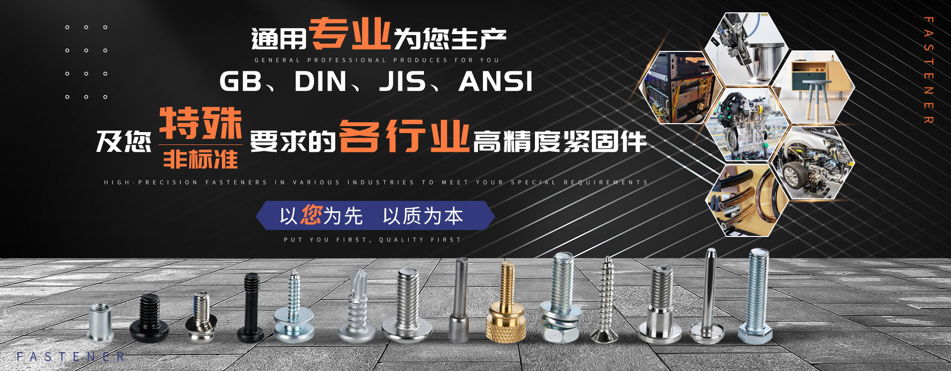 中山市通用螺絲制造有限公司成立于1987年,工廠坐落于廣東四小虎之一的中山市,北連廣州,毗鄰港澳。總占地面積14000m 2,足有兩個足球場1998年通過德國萊茵TUV ISO9002認證,于2002年通過TUV ISO9001:2000認證。2008年通過ISO 14000認證。我司主營自攻螺絲組合螺絲機械螺絲防松螺絲等標準和非標準件既可按客戶的要求提交所需的產品,也可為客戶量身定做所需產品。我司擁有專業的產品檢測隊伍和投影分析儀、金相、硬度計(韋氏和洛氏)、扭矩力測試計等完善的檢測設備,為電子、電器、五金塑料、衛浴、家具、機械、汽配等行業提供符合歐盟質量、環保要求的產品2006年,我司自主開發的ERP管理系統,使我們的生產和服務效率得到了極大的提高 經過三十多年地摸爬滾打,依靠眾多新老顧客的支持,通用螺絲逐漸成長為國內知名的緊固件供應商。了解更多 >>